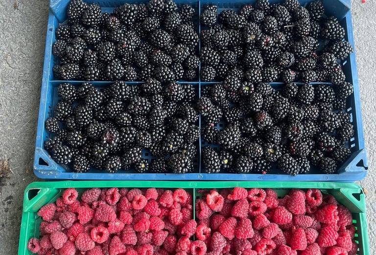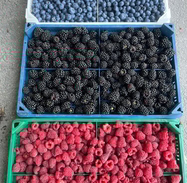 Нашите пресни плодове – ягоди, боровинки, малини и къпини. Набрани сутринта и доставени до вас още същия ден, за да запазят своя натурален вкус.